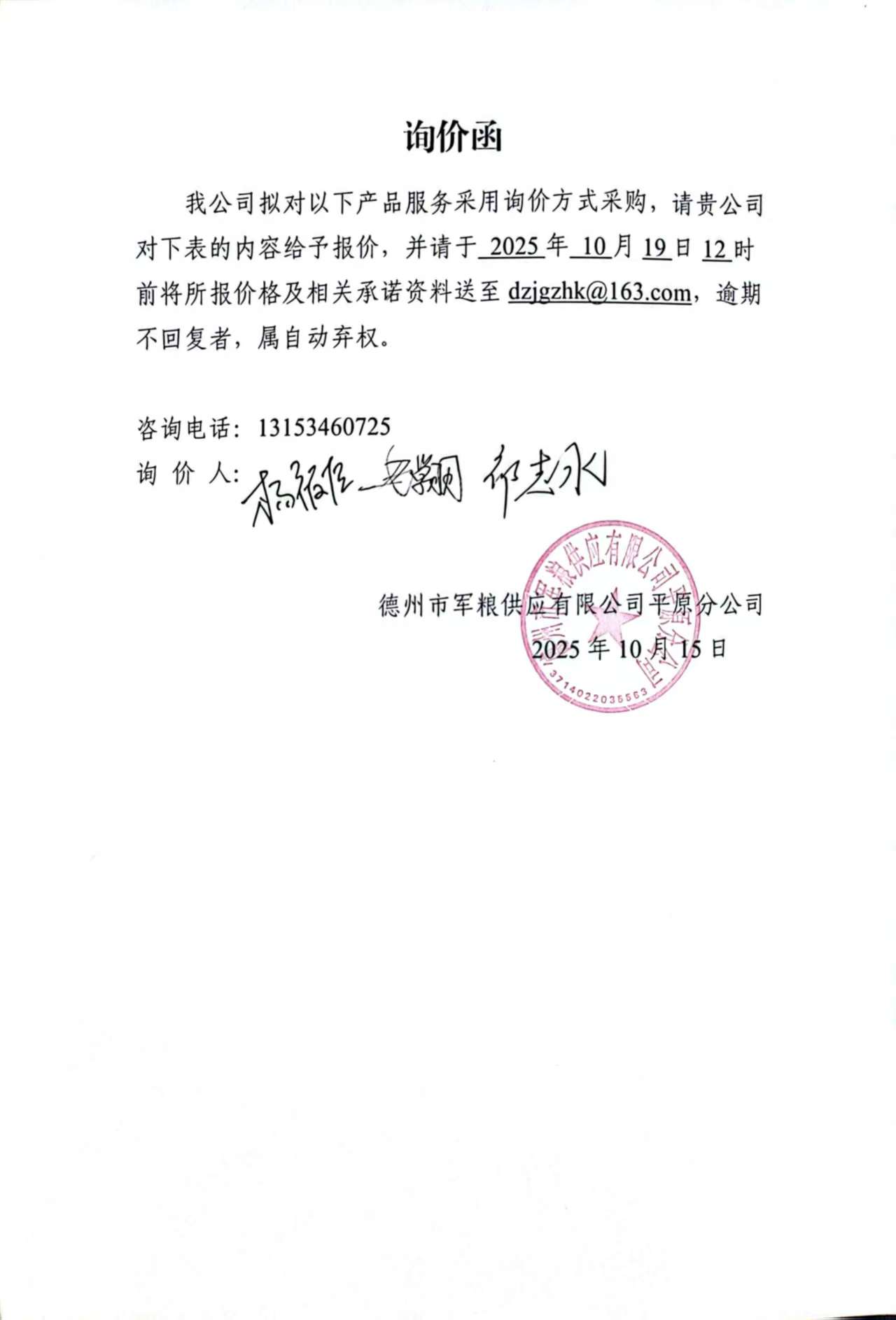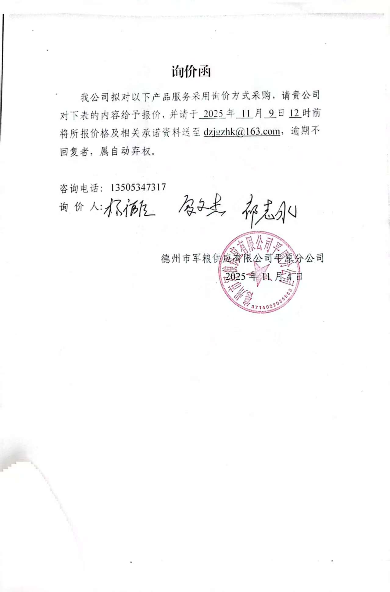 询价公告 | 德州市军粮供应有限公司平原分公司冷库用木质托盘项目
