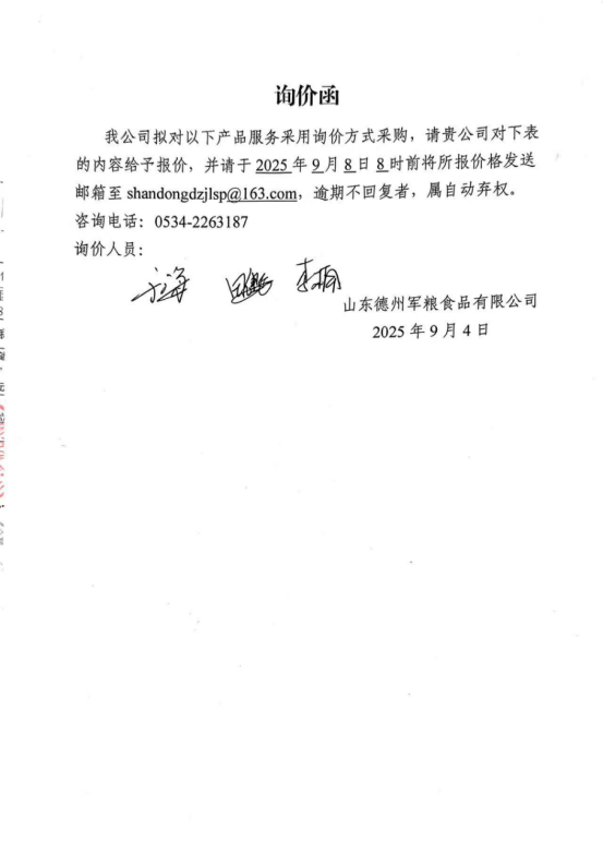 询价公告 |山东德州军粮食品有限公司冷库劳务外包项目