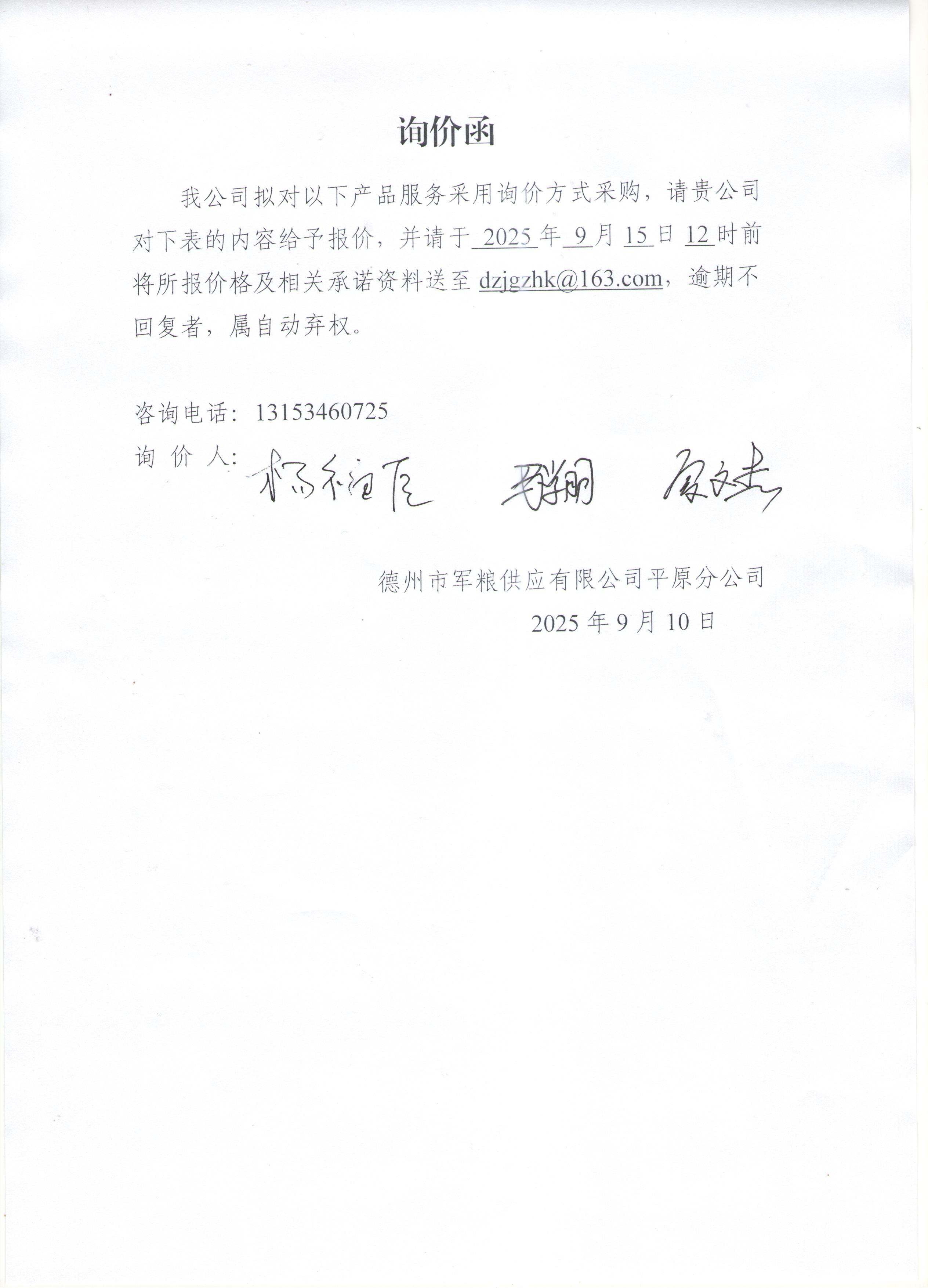询价公告 | 德州市军粮供应有限公司平原分公司基建及消防设施维修项目