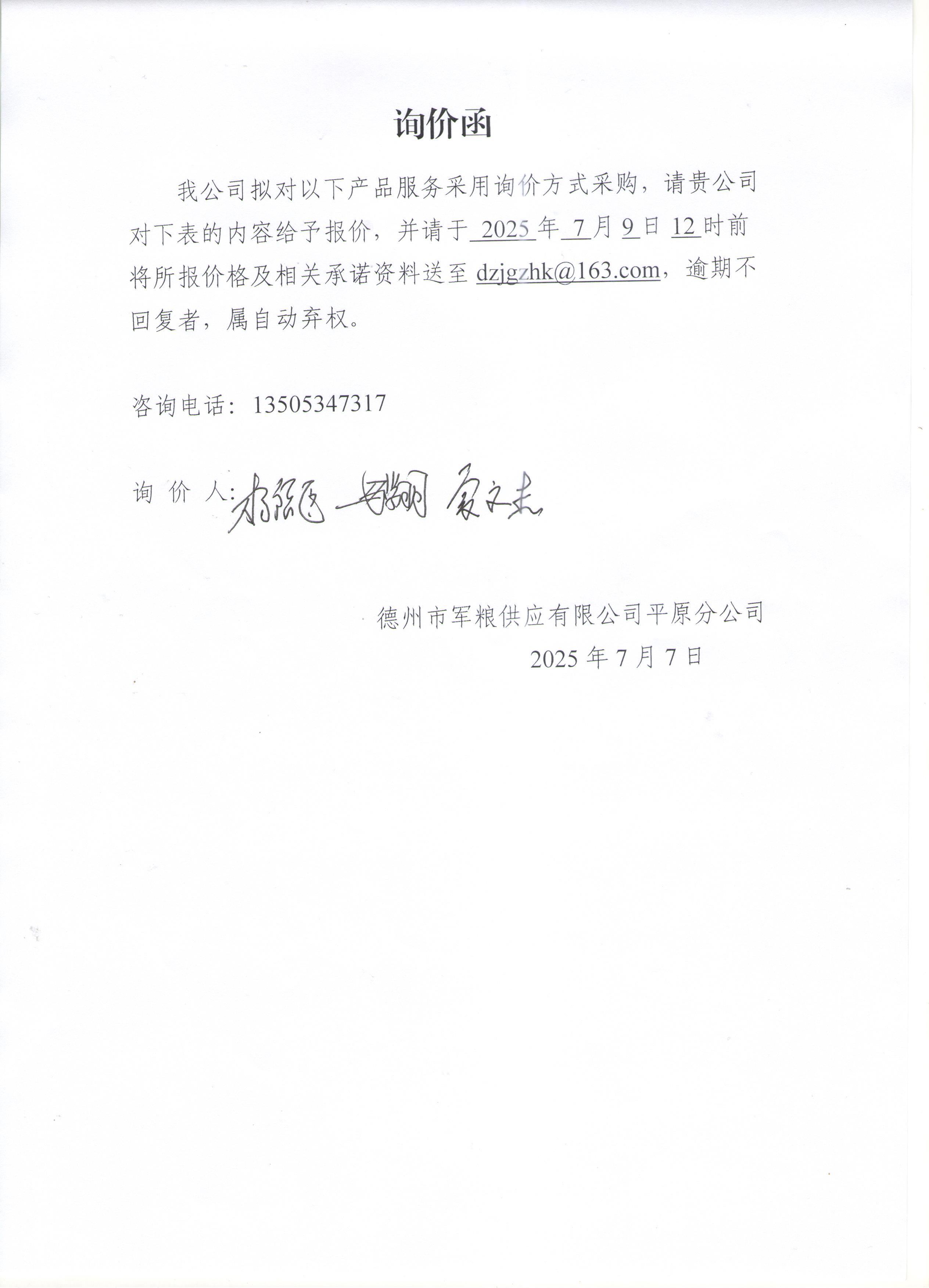 询价公告 | 德州军粮食品产业集团有限公司 安保保洁服务采购询价公告