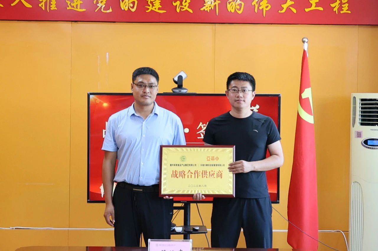 8月10日,德州军粮集团德云购网络科技有限公司与北京谷多餐饮管理有限公司举行战略合作签约仪式。北京谷多餐饮管理有限公司总经理韩云鹤,德州军粮集团党委书记、董事长夏建冰,党委委员、总会计师张炳峰出席签约仪式。北京豆苗中餐饮管理有限公司总经理韩彪与德州市德云购网络科技有限公司总经理赵鸿鹏代表双方签署协议。